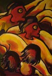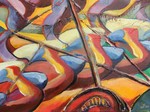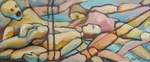 Het schilderij 'Het vlot van de Medusa' van Theodore Géricault uit 1819, hangt in Het Louvre. Ik heb in Parijs zittend voor het schilderij een hoop fragmenten getekend. Later diverse aquarelstudies gemaakt, gevolgd door een geheel van 15 acrylschilderijen op papier en op doek.